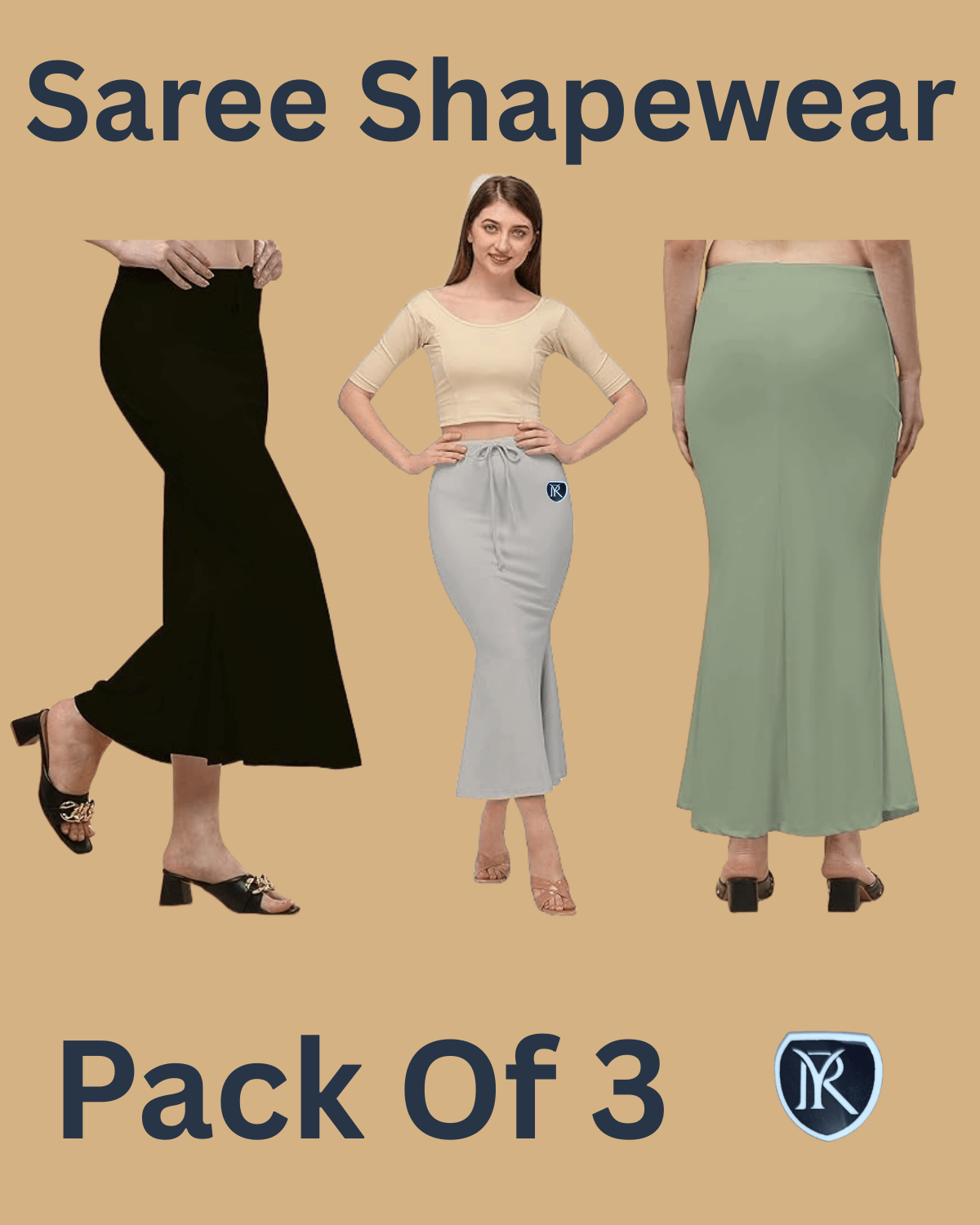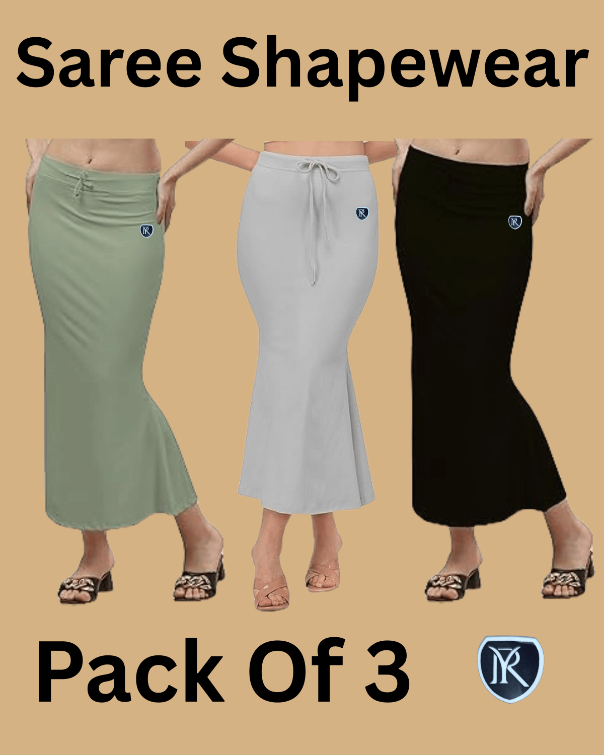 YAQR Saree Shapewear Pack of 3 – High-quality stretchable petticoat designed for a perfect slim fit. Soft cotton blend fabric with elastic waistband ensures comfort, tummy control, and a flawless saree drape for parties, weddings & daily wear.