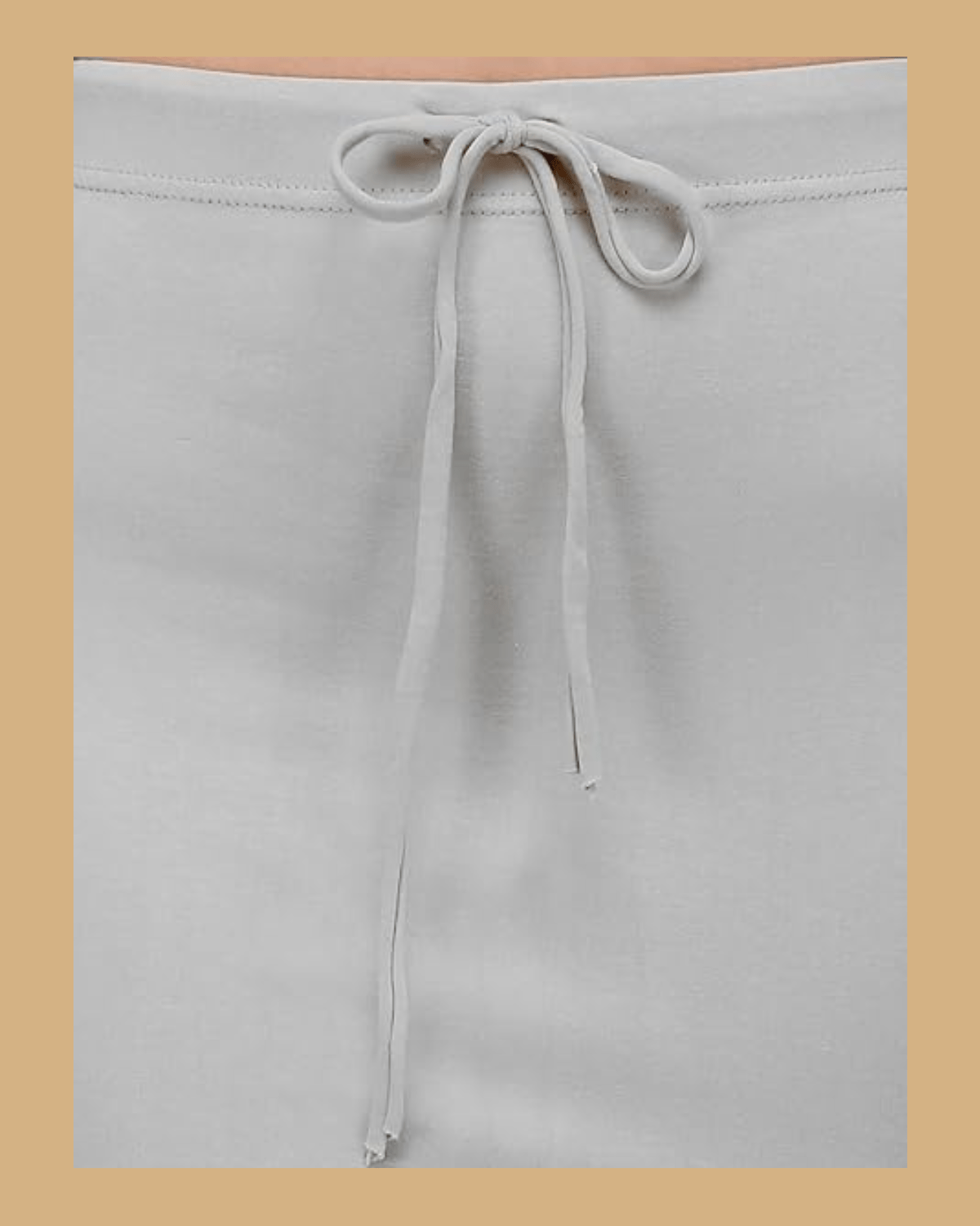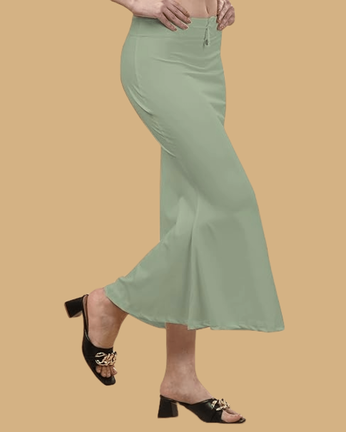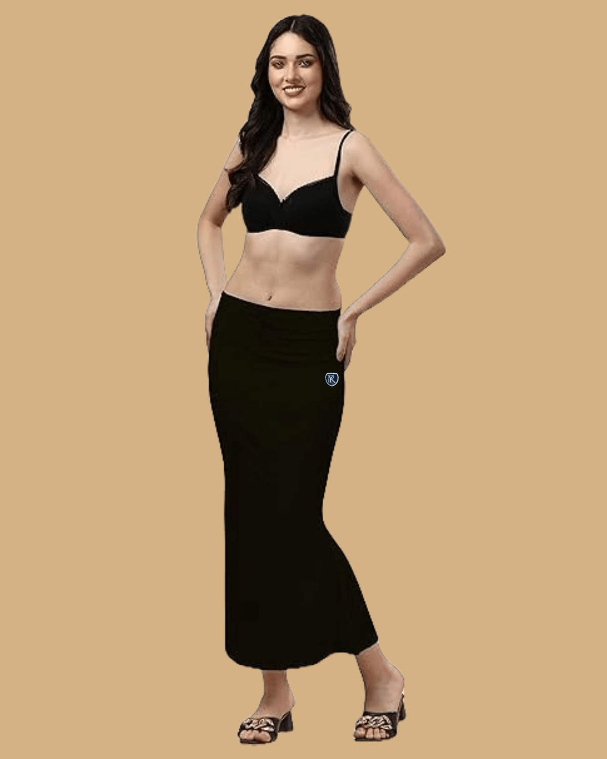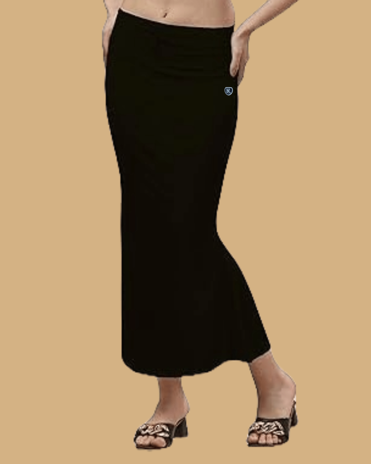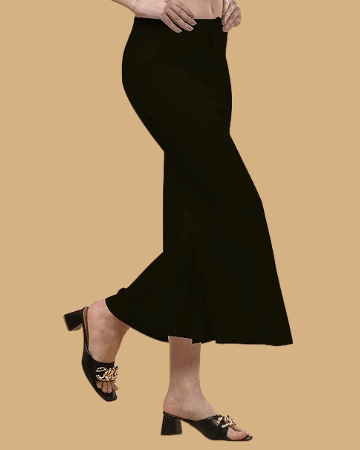 | Care Instructions – Easy to maintain; suitable for both hand wash and machine wash. | Body Hugging Fit – Designed to fit close to the body, allowing the saree to follow your leg shape and give a natural curvy look. | Elastic Waist with Drawstring – Comes with high quality elastic waistband and adjustable drawstring for a secure and customizable fit. | Comfortable & Stretchable – Two-way stretch blended fabric provides all-day comfort and flexibility for easy movement. |